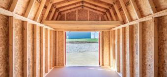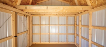 STANDARD FEATURES: 5/8” Quality Floor System, treated 4×6 Runners and 2×6 Treated Floor Joists 16" on Center (12" on Center for Garages), 2×4 Wall and Roof Framing with 16" on Center (24" stud on center for Metal siding buildings). LP shed floor, 50 year treated LP Smartside.