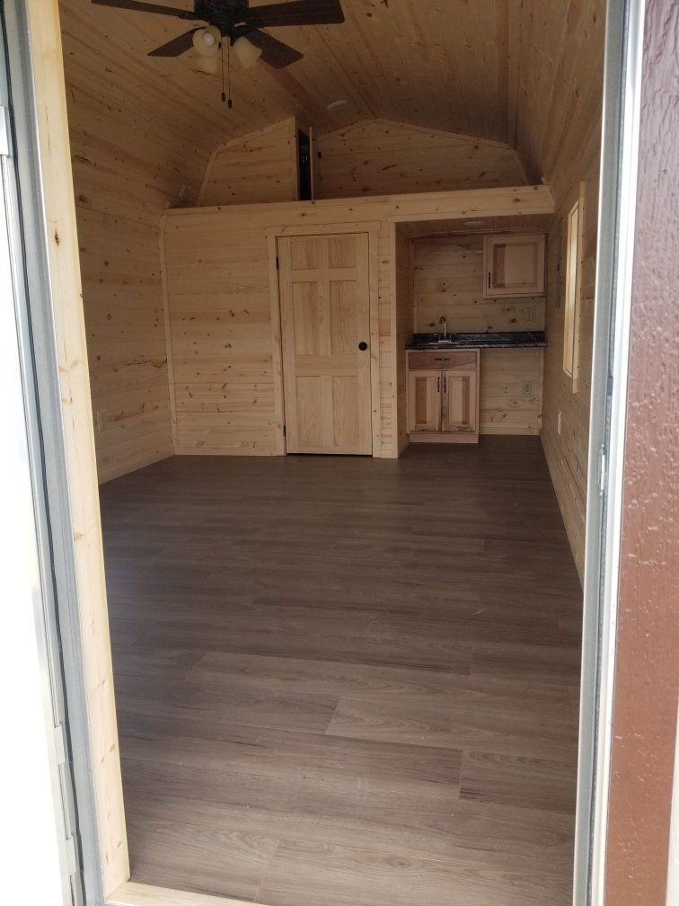 Built with a metal roof and LP Smart siding, it is fully insulated (walls, roof, floor). The inside walls are tongue and groove knotty pine. Full bath. Vinyl snap together floating flooring, insulated dual pane windows. HVAC unit (on select models), washer/dryer hook up. Electric and plumbing, hot water heater.